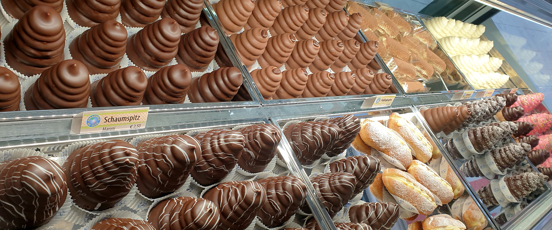In liebevoller Handarbeit entstehen Variationen aus luftigem Eiweiß-Zucker-Schaum, frisch dressiert, glasiert und mit Schokolade überzogen. Unsere Schaumspitz können für jeden Anlass individuell bestellt werden – ob Muttertag, Fasching, Halloween, Nikolo oder Silvester. Für garantiert frischen Genuss empfehlen wir eine rechtzeitige Vorbestellung.